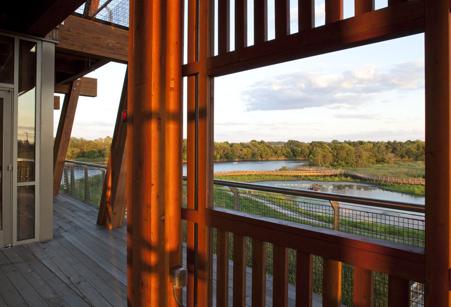 A good example of this process can be seen in the preferred siting of the DuPont Environmental Education Center (pictured above), located in Wilmington, Delaware. The building is intended to memorialize the contributions that Russell Peterson, former governor of Delaware and president of the Audubon Society, made to society and interpret one of his proudest achievements—the Russell W. Peterson Urban Wildlife Refuge. Through a detailed site selection process that embraced the above factors, it was determined that the best location for the center was directly adjacent to the wildlife refuge as opposed to a more remote location initially identified by the client. The building has an iconic presence, much like that of Russell Peterson, and poses a clear destination from Wilmington’s River Walk, while providing an elevated platform to take in and interpret the expanse of the refuge. This location also affords an optimal solar orientation and solves a multitude of site safety and infrastructure issues associated with the original site.