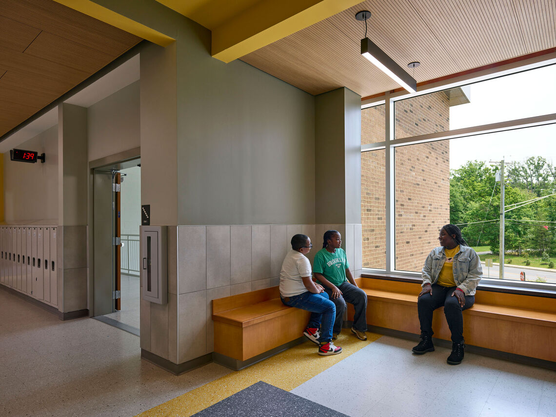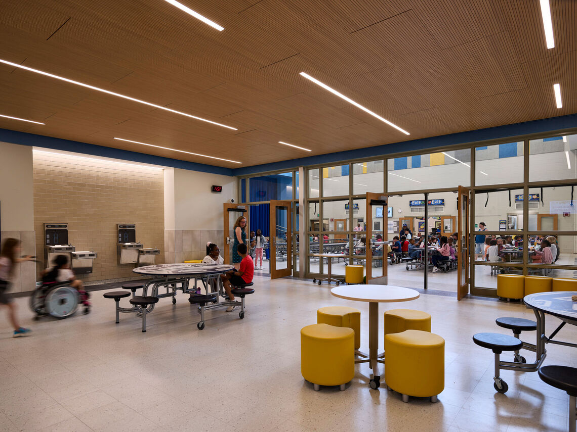 The cafeteria/gymnasium wing provides flexibility for large gatherings, when needed, and incorporates the greater community by acting as space for the Baltimore County Department of Recreation and Parks.